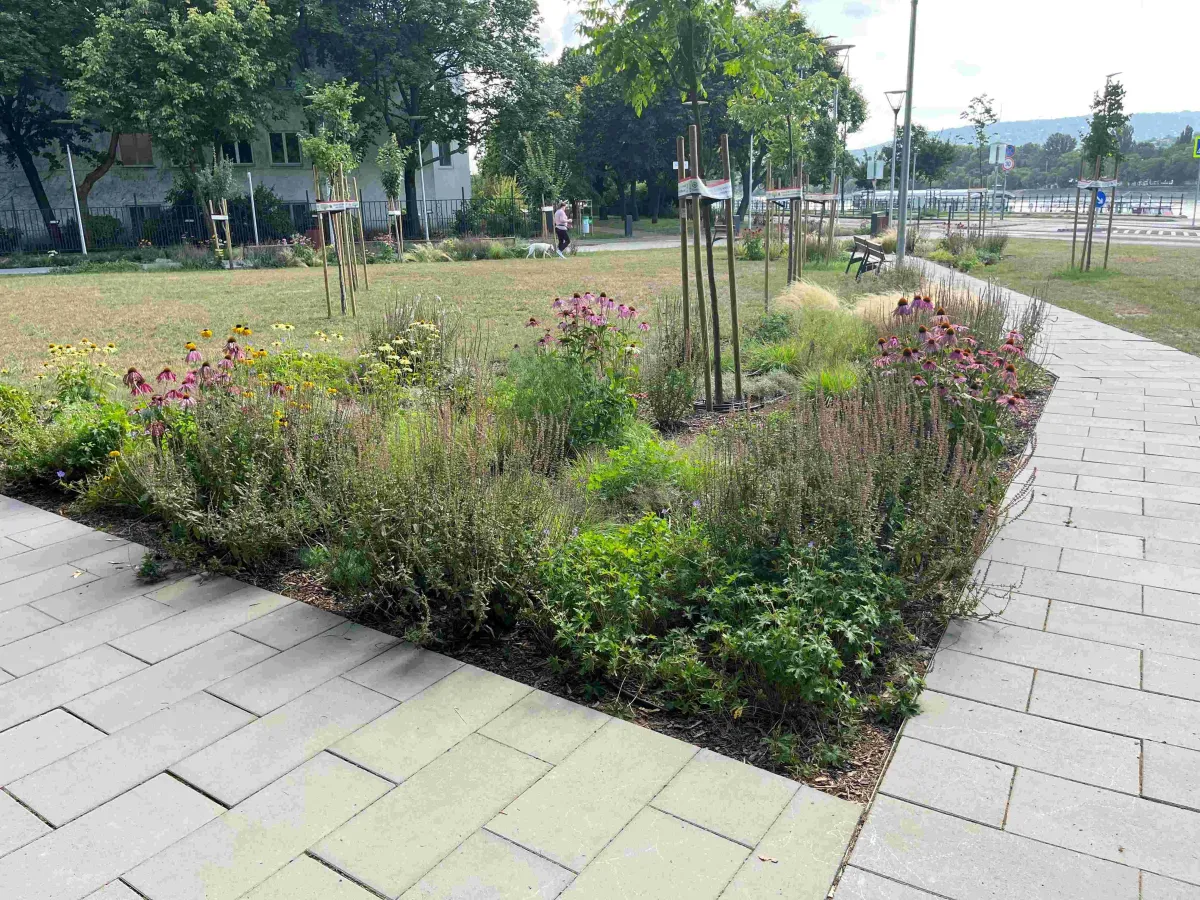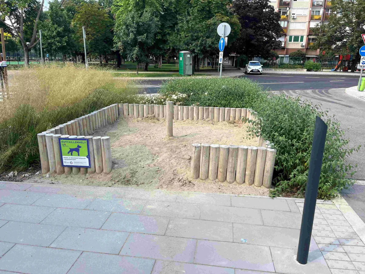 Elvégzett munkák: Térburkolat, terraway műgyantás burkolat, öntözőrendszer, növény ültetés, füvesítés, utcabútorok, kutya illemhely